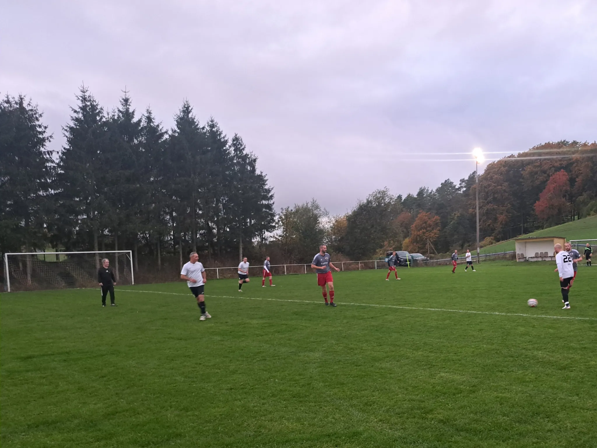 Nach der Halbzeit spielte nur noch eine Mannschaft: die Gastgeber. Allerdings wollte der Ausgleich nicht fallen. Es dauerte bis zur 45. Minute, ehe die Kugel im Netz landete. Eine Ecke verlängerte Sebastian mit dem Kopf, Micha drückte den Ball aus Nahdistanz zentral über die Linie (2:2/45.). Leider hielt das Unentschieden nicht lange. Auf der linken Seite spielten die Vitzerodaer einen Doppelpass, sodass Martin Schrumpf frei zum Schuss kam. Er ließ Sprotte mit platzierten Schuss ins rechte Eck keine Chance (2:3/47.). Die Antwort der Geißrainer ließ nicht lange auf sich warten. Sebastian bediente im Gegenzug Micha, der aus acht Metern den Torwart überwand (3:3/48.). Jetzt ging es hin und her, beide wollten den Sieg. Dann kamen die letzten sechs verhängnisvollen Minuten von Norman. Erst wurde er mit einem einfachen Doppelpass ausgespielt, sodass Maximilian Golle wie zuvor Schrumpf von links einsetzen konnte (3:4/54.). Dann spielte er in der Aufbauposition als letzter Mann zwei Fehlpässe, die jeweils zu den Gegentorenzum 3:5 durch Golle und 3:6 durch Brix führten (57./60.). Schade, in der ersten Halbzeit hatte Norman ein starkes Spiel gemacht. So richtig kam er mit den Lichtverhältnissen zum Schluss nicht zurecht. Ärgerlich auch, dass Eckardtshausen vor dem 3:4 eine dicke Chance zur eigenen Führung besaß. Jedoch konnte eine Drei-gegen-Zwei-Überzahl nicht genutzt werden. Philipp scheiterte zweimal. Im direkten Gegenzug begann dann das Drama.