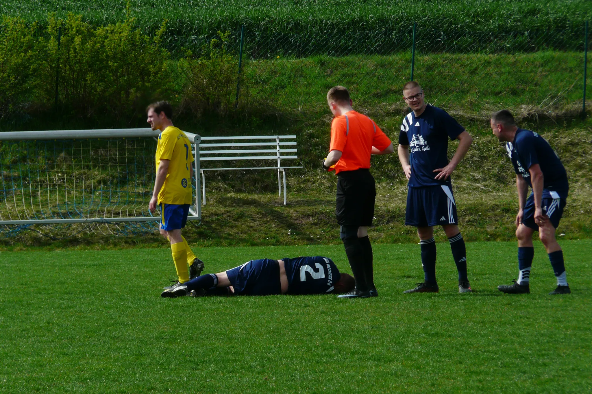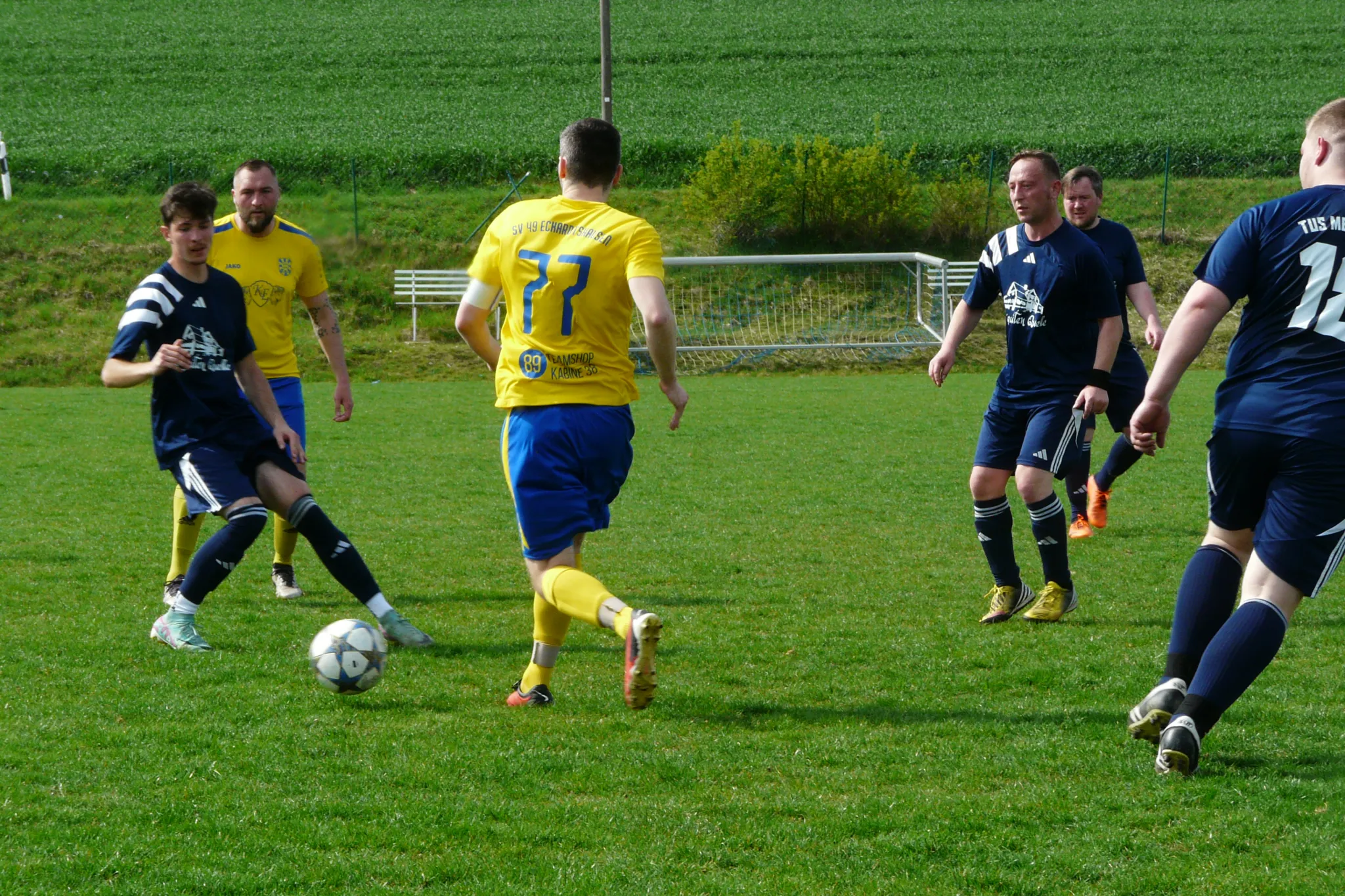 Schiri Schmidt packte keine Nachspielzeit drauf und erlöste damit alle Gästekicker. Ein Fiebertraum am Geißrain, der den Jungs von Martin Reißig zwar nur drei Punkte brachte, aber den Lohn für eine zu keinem Zeitpunkt unkonzentrierte, nachlassende Leistung auch in dieser Höhe verdient zeigt. Selbstredend profitierte der SV 49 vom Fehlen einiger Meimerser Stammkräfte, doch zogen sie das geforderte Spiel von vorne bis hinten durch. Mit vier Siegen aus den letzten fünf Spielen kann das Team nun einmal mehr gestärkt in die schwere Aufgabe am kommenden Samstag, 25. April 2026, daheim gegen die SG VfB 1919 Vacha III gehen – vielleicht ja wieder mit dem ein oder anderen Zuschauer mehr auf dem Geißrain.