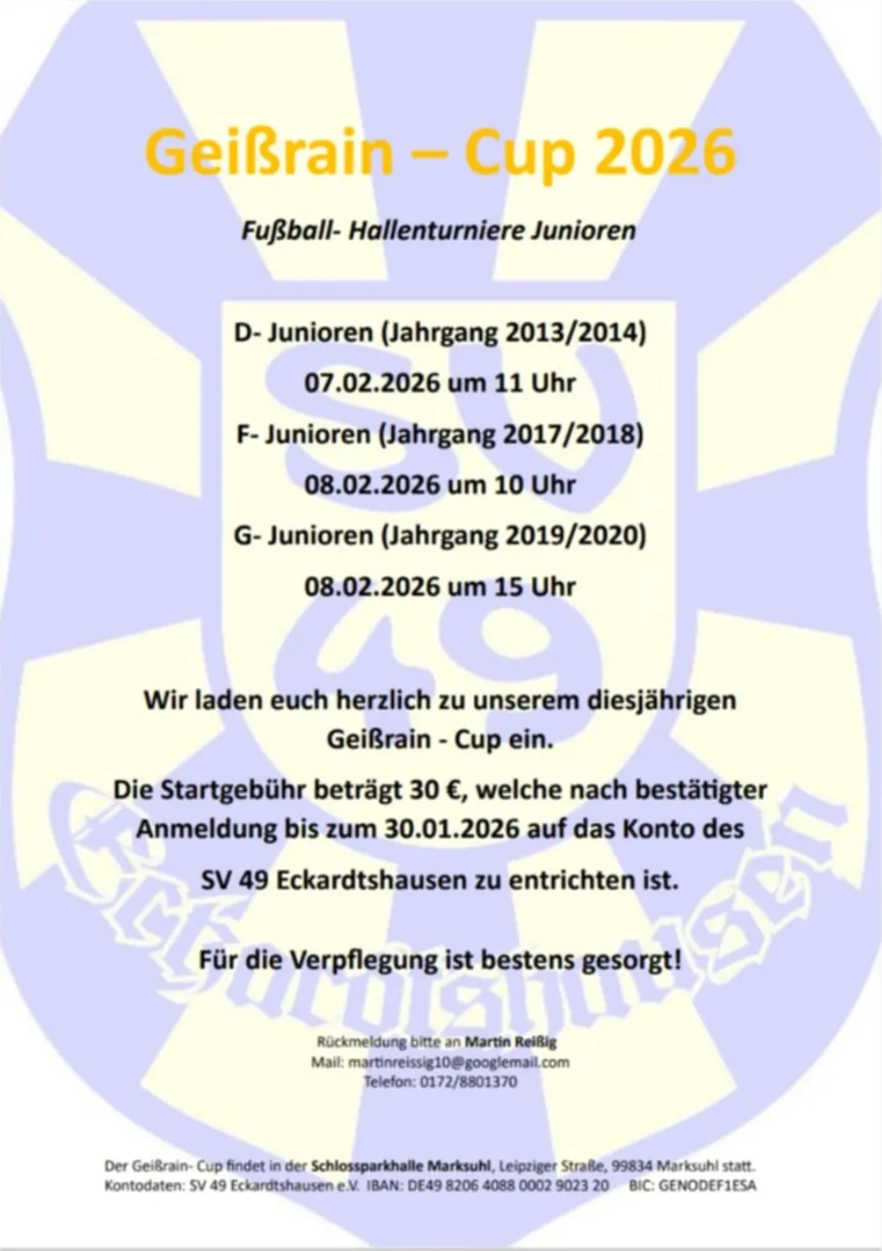 Tradition hält Bestand: Geißrain-Cup am 07./08. Februar in der Schlossparkhalle